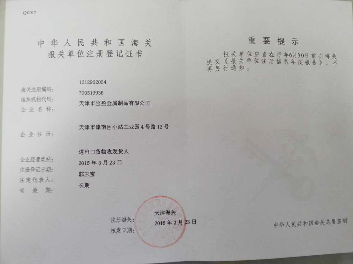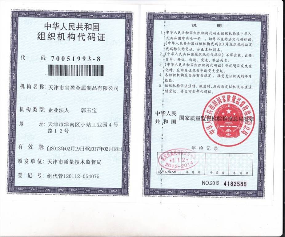 天津市寶盈金屬制品有限公司成立于1998年,公司坐落于天津市津南區(qū)小站工業(yè)園。距津港高速公路2公里,塘沽港25公里,天津?yàn)I海國際機(jī)場25公里,海、陸、空交通十分便利。公司占地面積10000平方米,年生產(chǎn)能力4500噸金屬制品,包括辦公室人員及車間工人寶盈共有100多名員工。 2010年6月2日,通過了ISO9001:2008質(zhì)量管理體系認(rèn)證,2012年5月由摩迪國際進(jìn)行焊工考試,取得EN 287-1焊工資格證書。